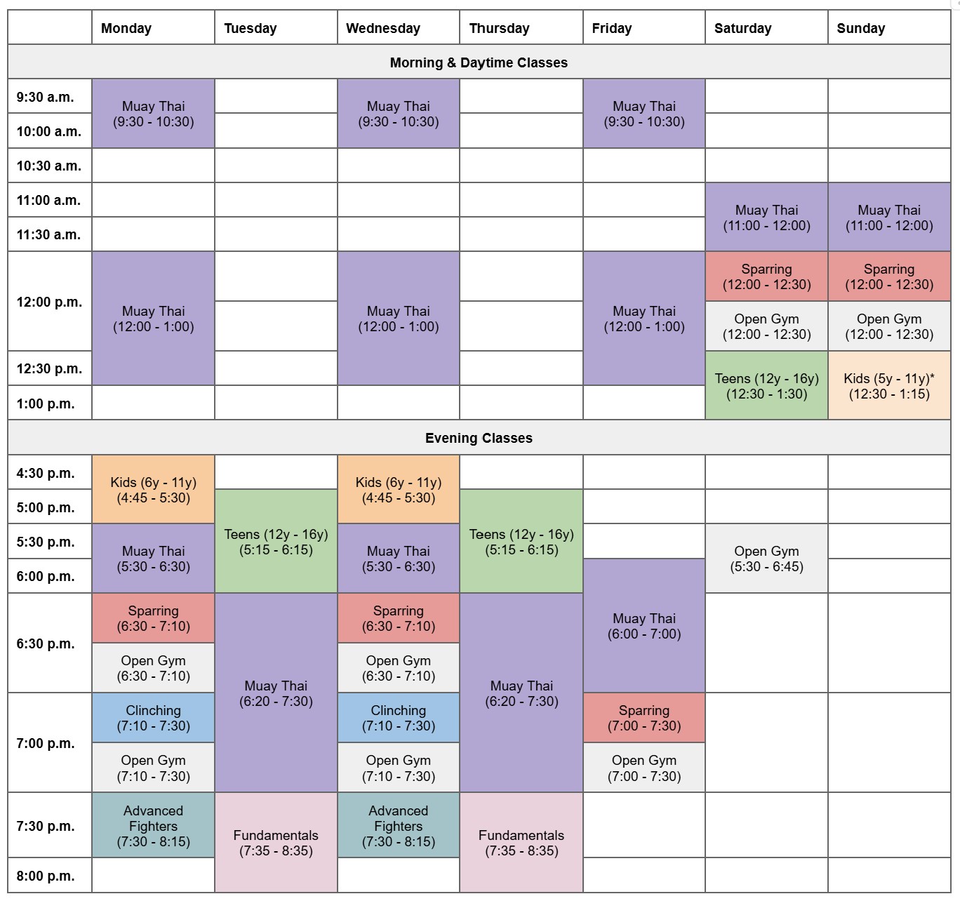 For safety, sparring classes require a solid grasp of fundamental Muay Thai skills. Students require coach approval to attend.
